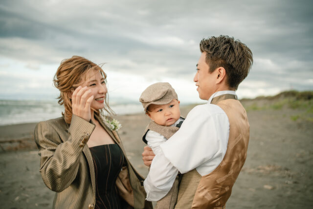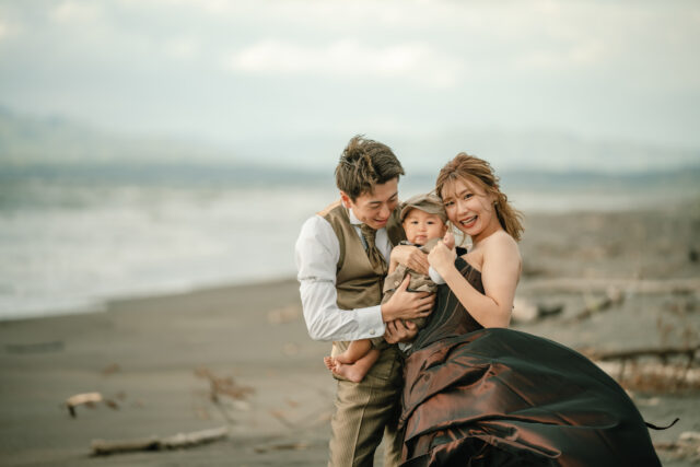 お子様を抱きしめながら、家族の未来に想いを重ねて──そんな夕景の中での写真は、まさに「一枚の物語」。移動や撮影のタイミングは、無理のないゆったり設計。お子様が飽きずに過ごせる工夫や、休憩のタイミングも大切にしています。家族全員の笑顔が自然にあふれるよう、スタッフがしっかりサポートいたします。