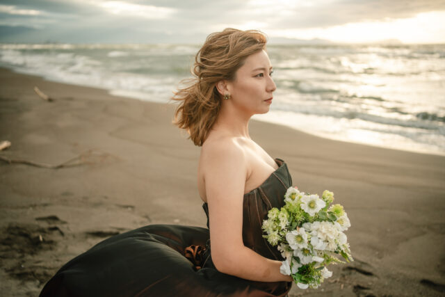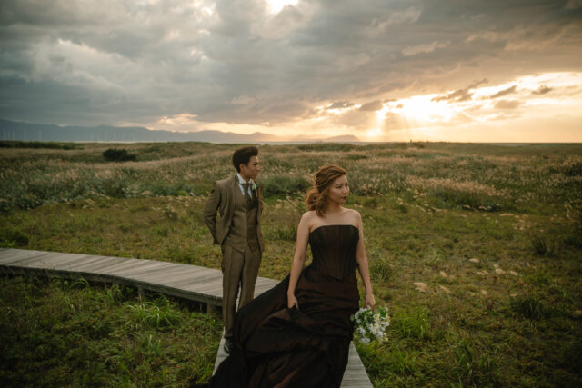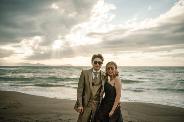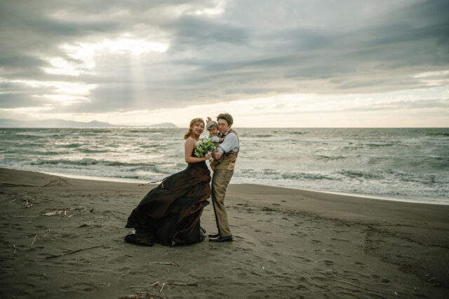 そして海へと沈んでいく夕日——ふたりだけでなく、お子様も一緒に。“家族のかたち”をまるごと写し残せる、秋のフォトウェディングツアーです。