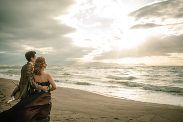 そして海へと沈んでいく夕日——ふたりだけでなく、お子様も一緒に。“家族のかたち”をまるごと写し残せる、秋のフォトウェディングツアーです。