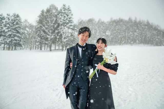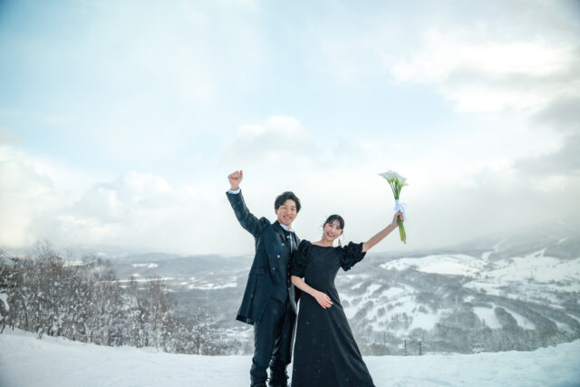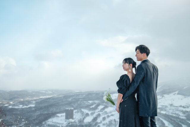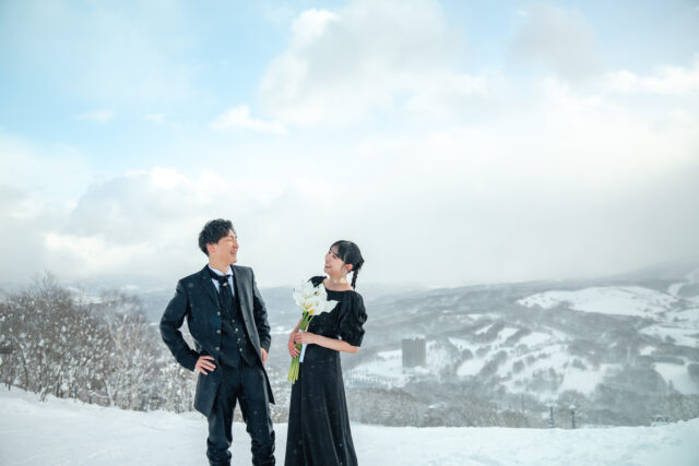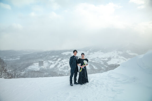 北海道・虻田郡留寿都村に広がる ルスツリゾート。世界的にも知られるパウダースノーのゲレンデで、スノーボードを愛するふたりにぴったりの冬フォトウエディングが叶います。真っ白な雪原と広がる空、そしてボードを手にしたふたりの笑顔。自由で、ナチュラルで、心から“自分たちらしい”瞬間を残すことができます。