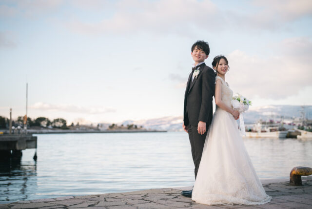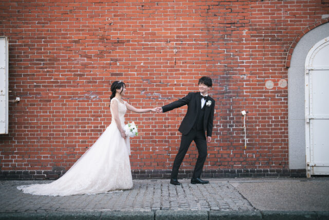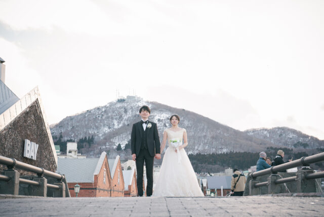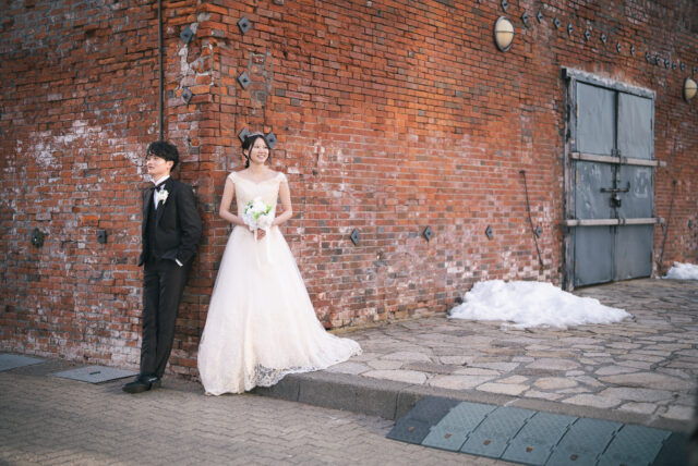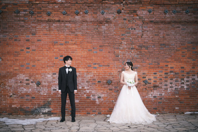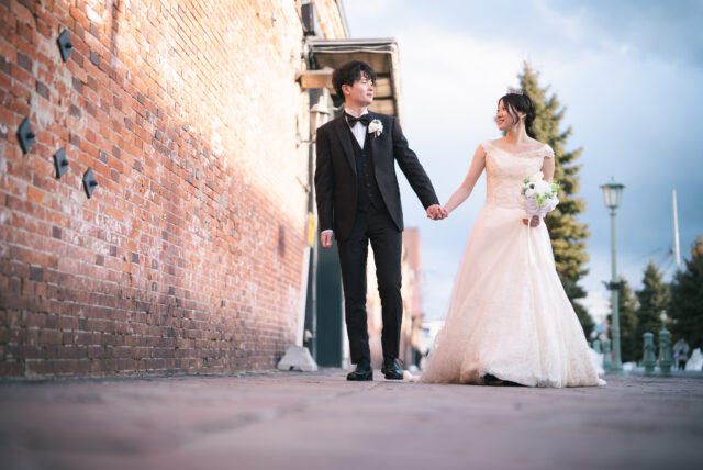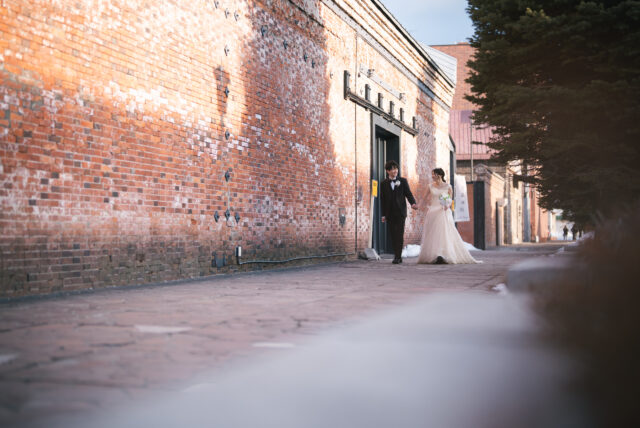 歴史を感じる赤レンガの街並み。海の香りを運ぶ港の風。遠くに広がる函館の空と光。函館赤レンガ倉庫は、北海道の中でも特にロマンチックなフォトロケーションです。どこかヨーロッパの港町のような雰囲気の中で、ふたりの特別な一日を写真に残します。