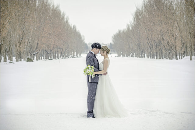 北海道の冬のフォトウエディングや前撮りは、雪景色が広がるロケーションでしか撮れない幻想的な写真が魅力です。ただし、その一方で「寒さに耐えられるか不安…」「衣装で防寒できるの?」と心配になる花嫁さまも多いはず。そこで今回は、冬の撮影を安心して楽しむための 防寒・準備のコツ をご紹介します。