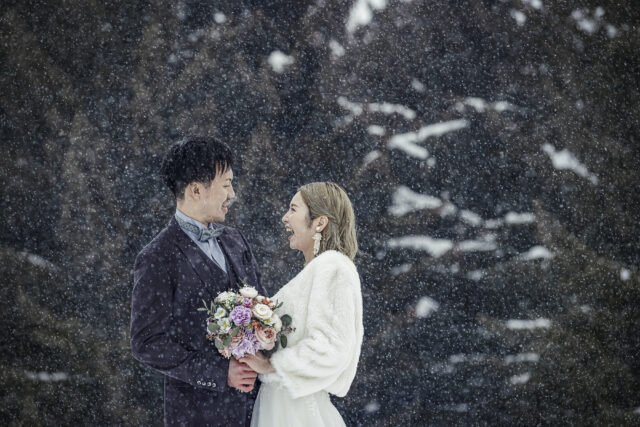 観光客や散策の人が少ない冬は、まるでふたりだけの空間。静寂と澄んだ空気が、自然な表情や距離感を引き出してくれます。