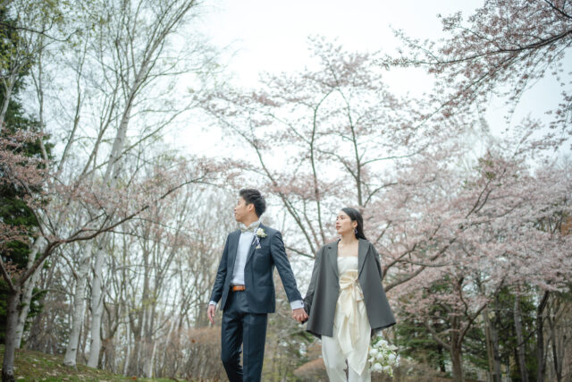 春夏秋冬の始まり、桜舞う春のフォトウエディング。