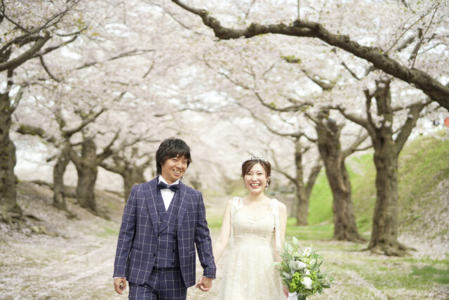 春夏秋冬の始まり、桜舞う春のフォトウエディング。