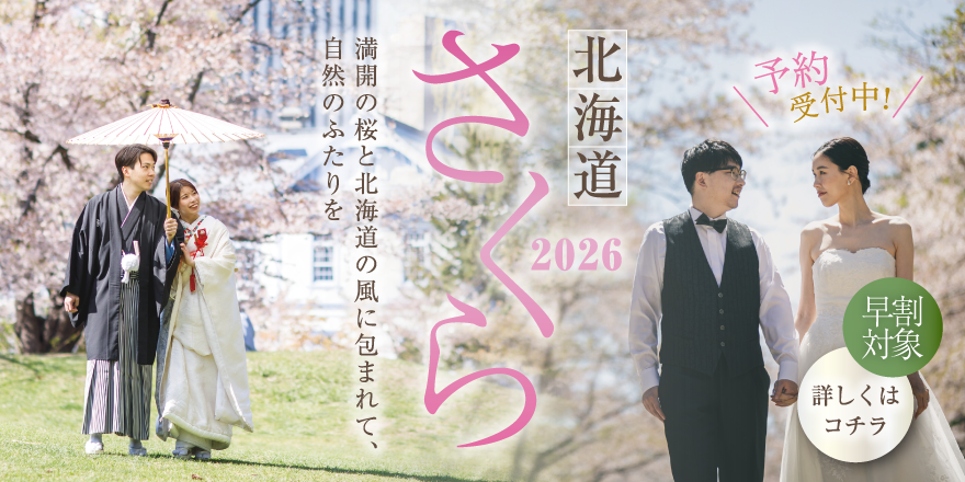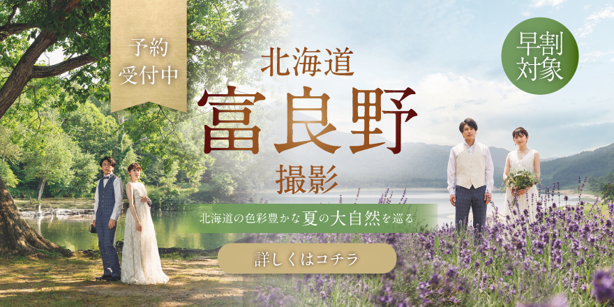 北海道には、広大なラベンダー畑やひまわり畑、壮大な山々、澄んだ湖など、どこを切り取っても絵になるフォトジェニックなスポットが凝縮されています。 夏の撮影は鮮やかで開放的な雰囲気、秋の紅葉や落ち葉が敷き詰められた森での撮影は温かみのあるシックな雰囲気、そして冬の雪景色では幻想的でロマンチックな世界観を演出できます。 どの季節でも、それぞれの美しさが引き立つ北海道ならではのフォトウェディングが叶います。 一生に一度の特別な撮影を、息をのむほど美しい風景の中で楽しんでみませんか? ※プラン料金:札幌、函館での撮影の場合